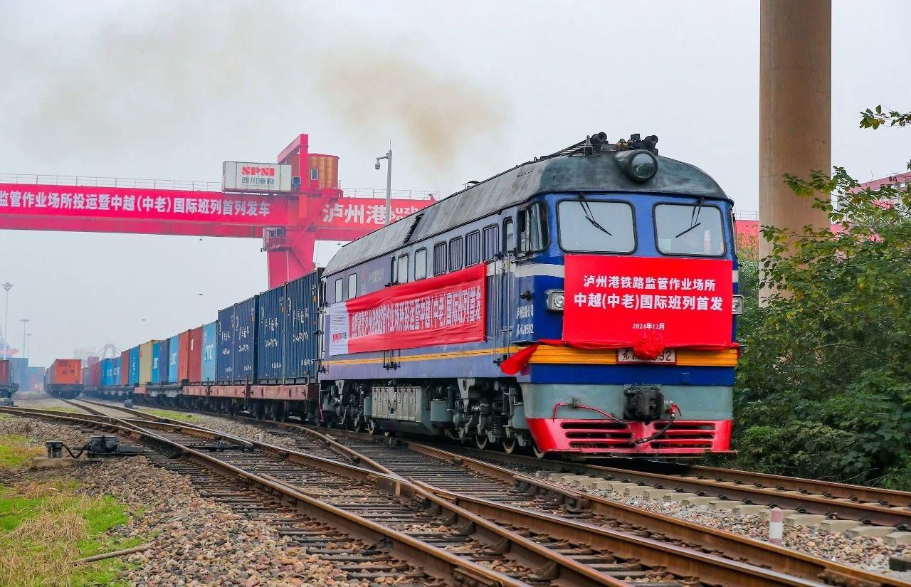△2024年12月18日,四川泸州首列中越(中老)国际班列,从泸州港国际集装箱码头进港铁路专线缓缓驶出。 中国连续20多年保持越南最大贸易伙伴地位,新增对越投资金额和项目数量稳居前列;两国互联互通和智慧口岸建设有条不紊推进,数字经济、能源转型等新兴领域合作方兴未艾;跨境旅游合作区让中越游客便捷实现一日游两国……中越务实成果持续造福两国人民。